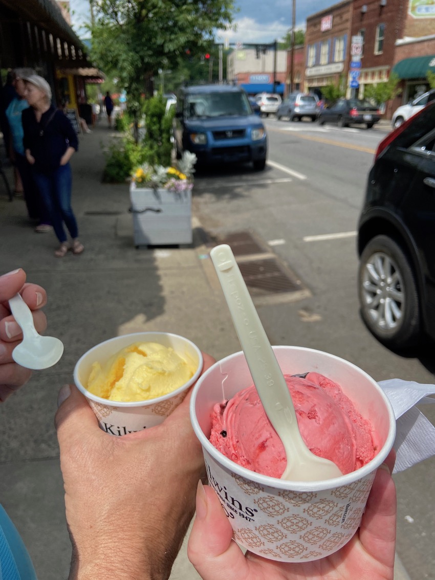 Später holten wir uns noch ein leckeres Eis bei Kilwin's, wo ein Schild an der Tür sagte, dass immer nur eine Familie im Laden erlaubt ist: