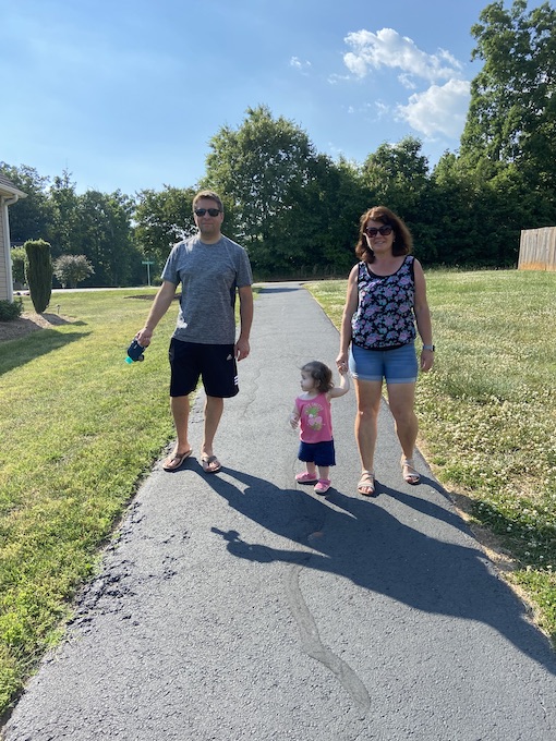 Wir hatten für Samstag, den 22. Mai ab 5pm eingeladen. Als die ersten Gäste eintrudelten, ging es in den Garten. Emberly hatte gleich wieder das Splash Pad angestrebt und schon ihr Outfit in dem Restwasser nass gemacht. Meine Freundin Jackie spielte mit ihr: