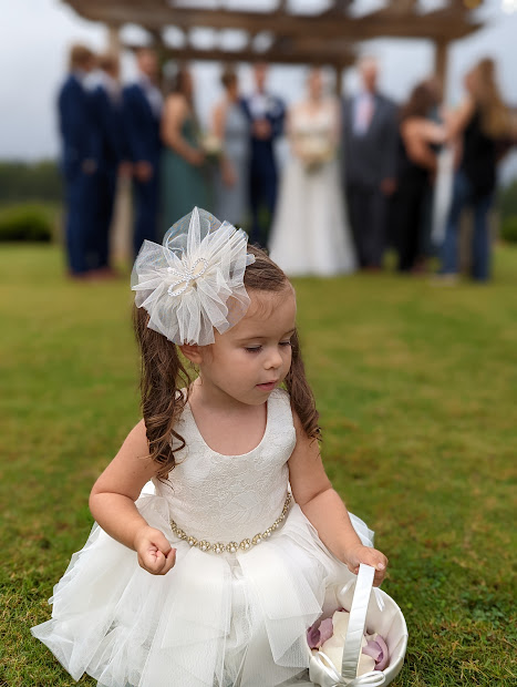 Emberly und Carter (Jackie's Enkelsohn) kamen zusammen den Mittelgang entlang. Emberly trug ein Körbchen mit Blumen und Carter hatte das Kissen mit den Ringen. Dann hat Carter das Kissen fallengelassen und es war so lustig, wie sie sich umdrehten und es wieder eingesammelt haben: