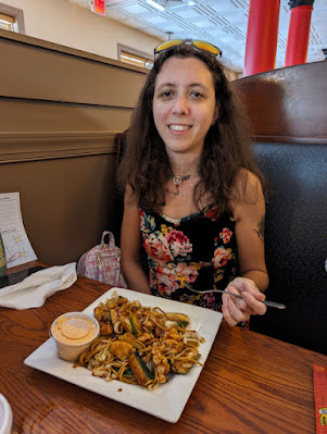 Danach sind wir vier zusammen nach Hickory gefahren, wo wir in einem japanischen Restaurant zu Mittag essen wollten. Als die Kellnerin uns zu unserem Tisch führte, hatte Emberly gesehen, dass in einer Booth zwei Polizisten sassen und sie wollte unbedingt zurück gehen und ihnen "Hi" sagen. Gesagt, getan - das Kind kennt keine Scheu und hier in den USA wird sehr viel Wert darauf gelegt, dass Kinder keine Angst vor der Polizei haben. Ich war so perplex und habe nur schnell einen Schnappschuss gemacht, als sie den Tisch der Polizisten wieder verließ und ihnen zum Abschied noch zuwinkte:
