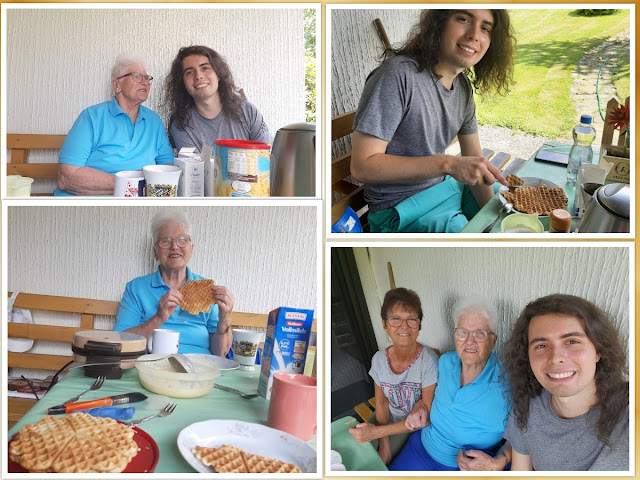 Wieder an einem anderen Tag war meine Schwester bei meiner Mama und sie haben Waffeln auf der Terrasse gebacken: